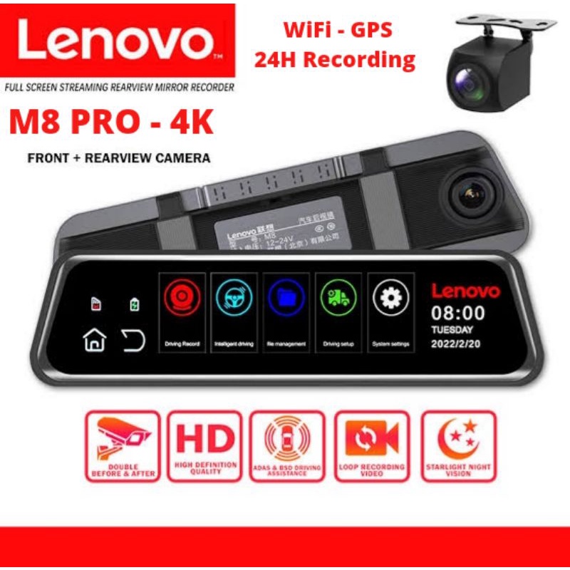 Lenovo M8 PRO 4K WiFi ADAS GPS E-Mirror Dashcam Kamera Mobil