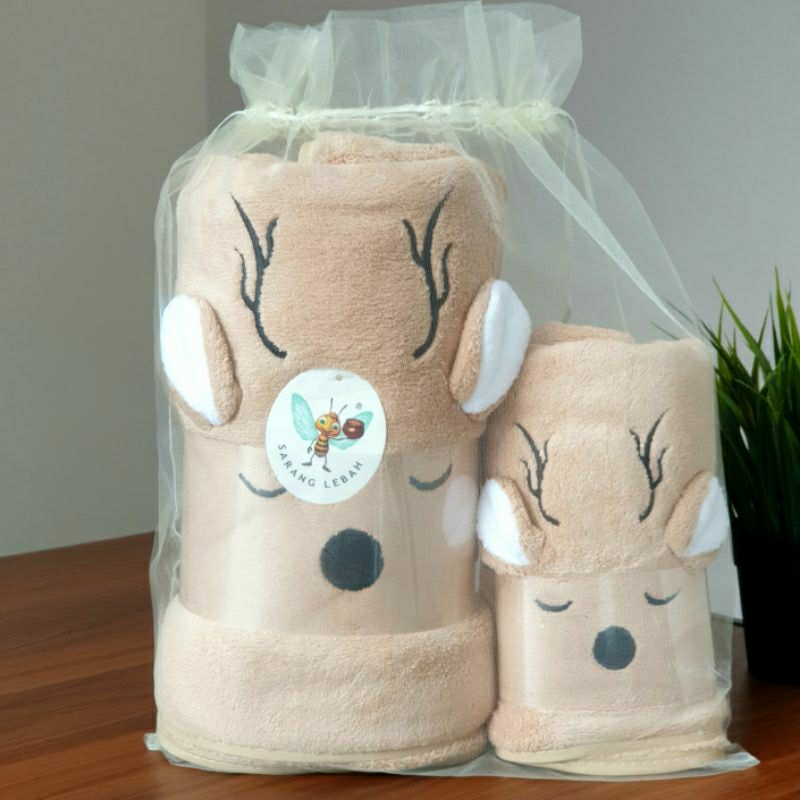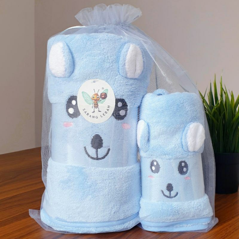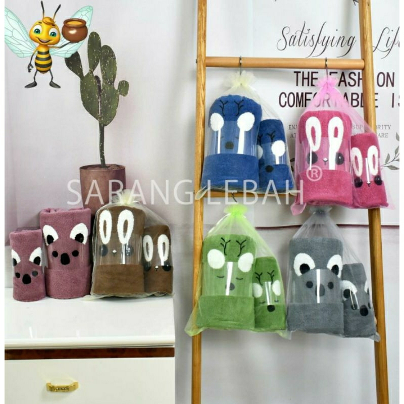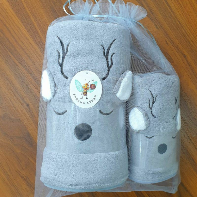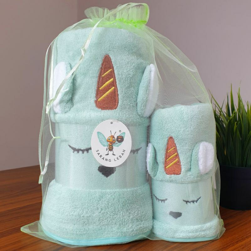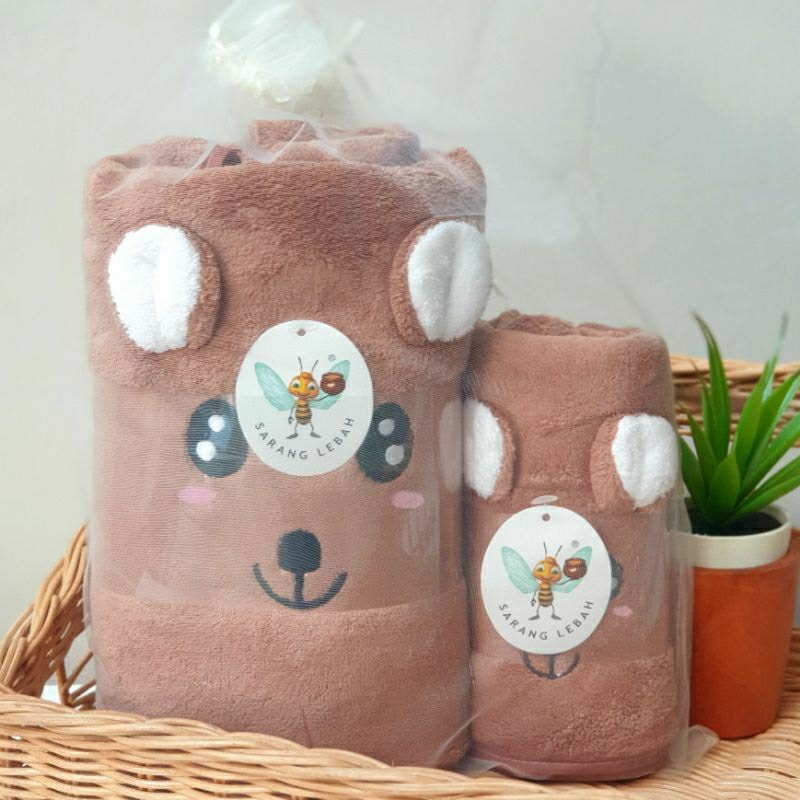 2IN1 HANDUK MANDI SET ISI 2 JUMBO (UK 70X140 DAN UK 35X75 CM) SARANG LEBAH HAMPERS | HANDUK MANDI MICROFIBER BAYI LEMBUT