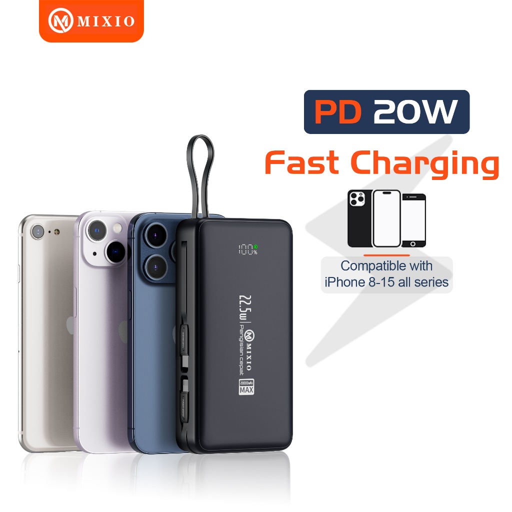 MIXIO MP-10 20000mAh Powerbank 22.5W With Kabel Fast Charging Lightning & Type C For Iphone/Android