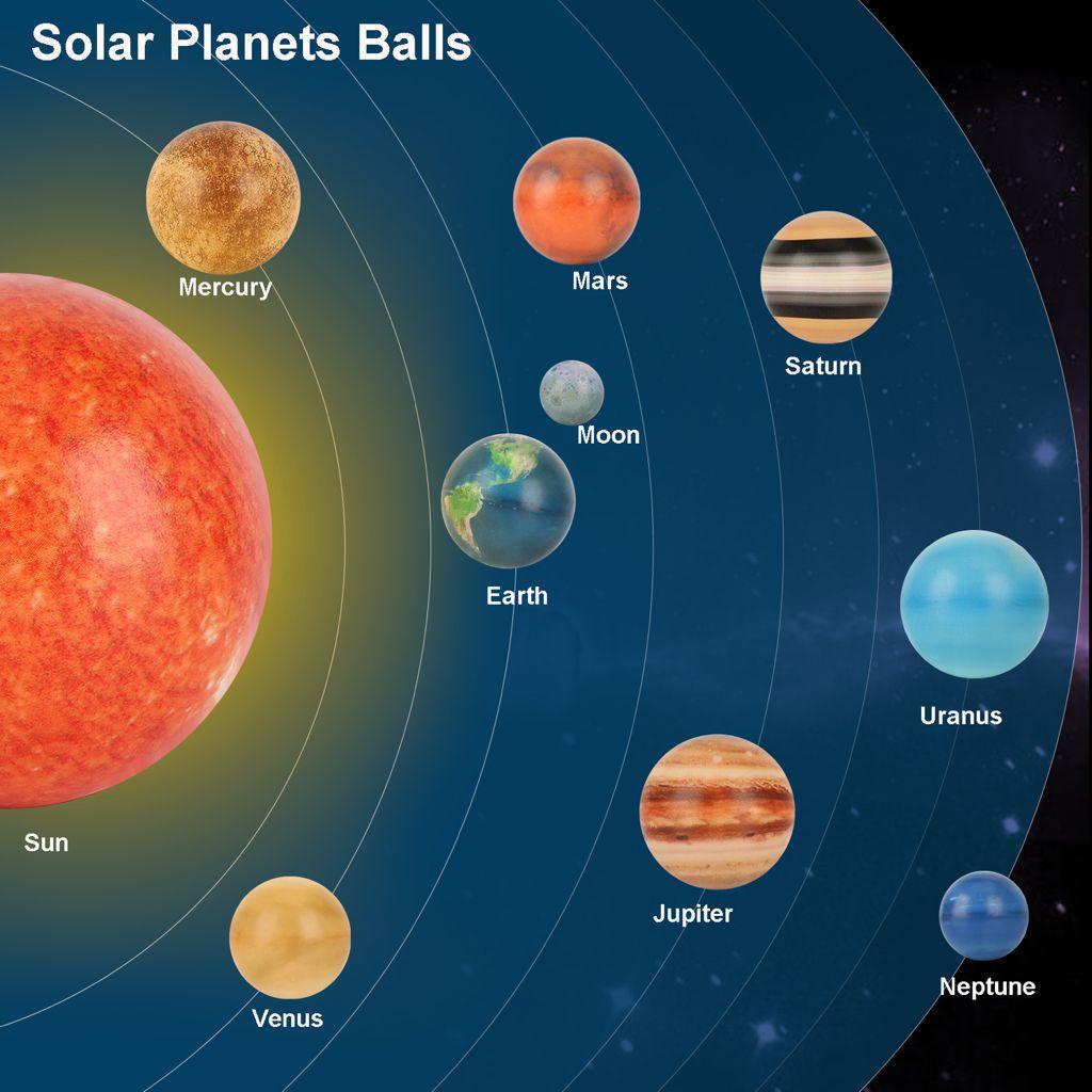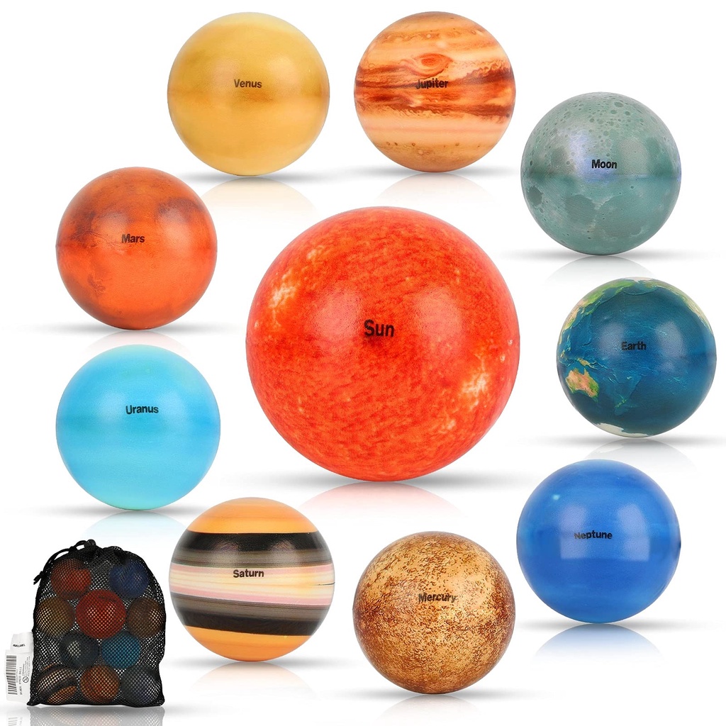 10pcs Bola Planet Tenaga Surya Mainan Edukasi Planet Bola Elastis Mainan Bola Pantul Untuk Anak