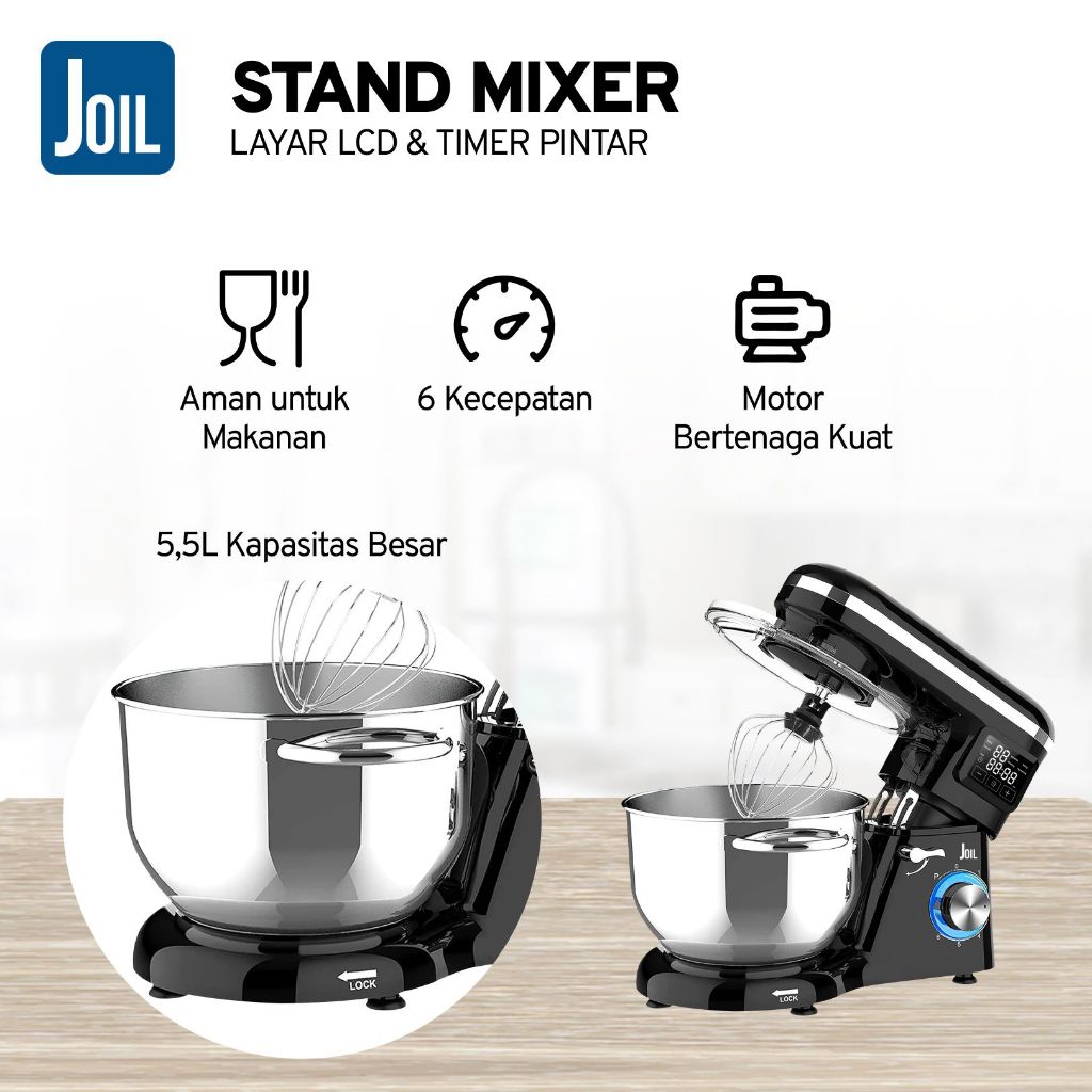 [Mall] Stand Mixer Joil Hand Mixer 5.5L Off 6 Speed Stainles Steel M1 Jumbo Berkualitas Garansi Resmi 1 Tahun Telaris