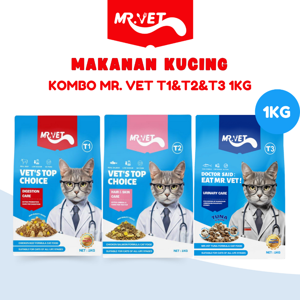Mr. Vet - Makanan Kucing Kering Mr.Vet T1 1kg atau T2 1kg& T3 1kg
