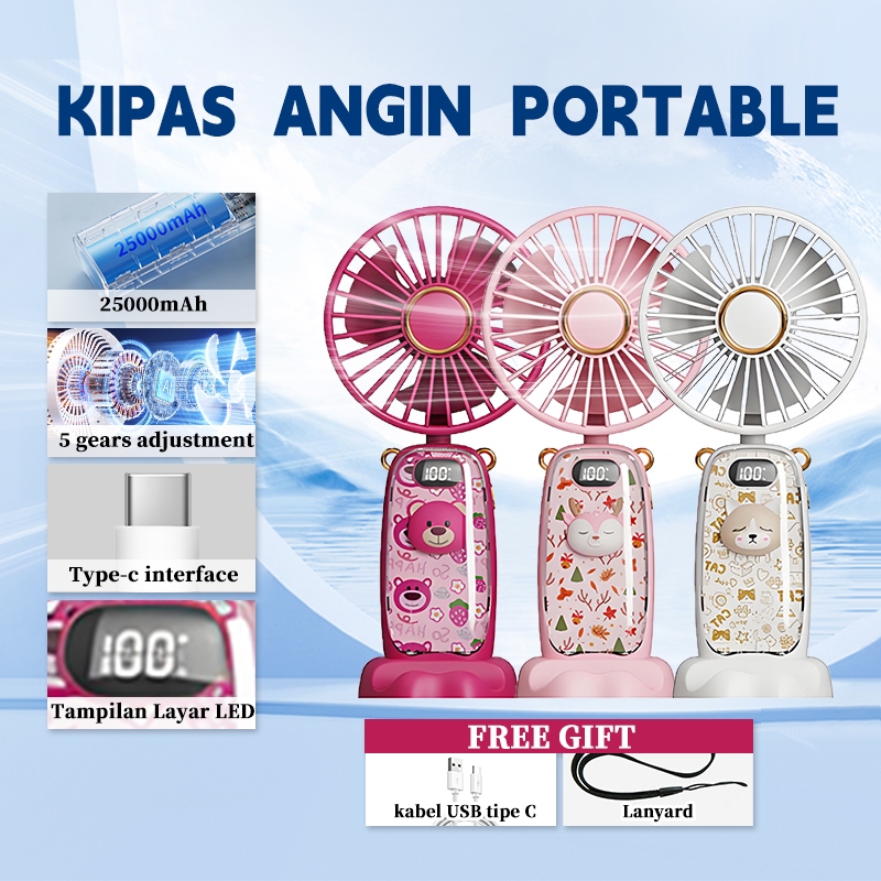 ( PROMO )Disney Kipas Angin Mini Portabel Usb 25000 mAh Kipas Lipat/Leher 5-Speed Wind LED Display/Kipas Angin Mini