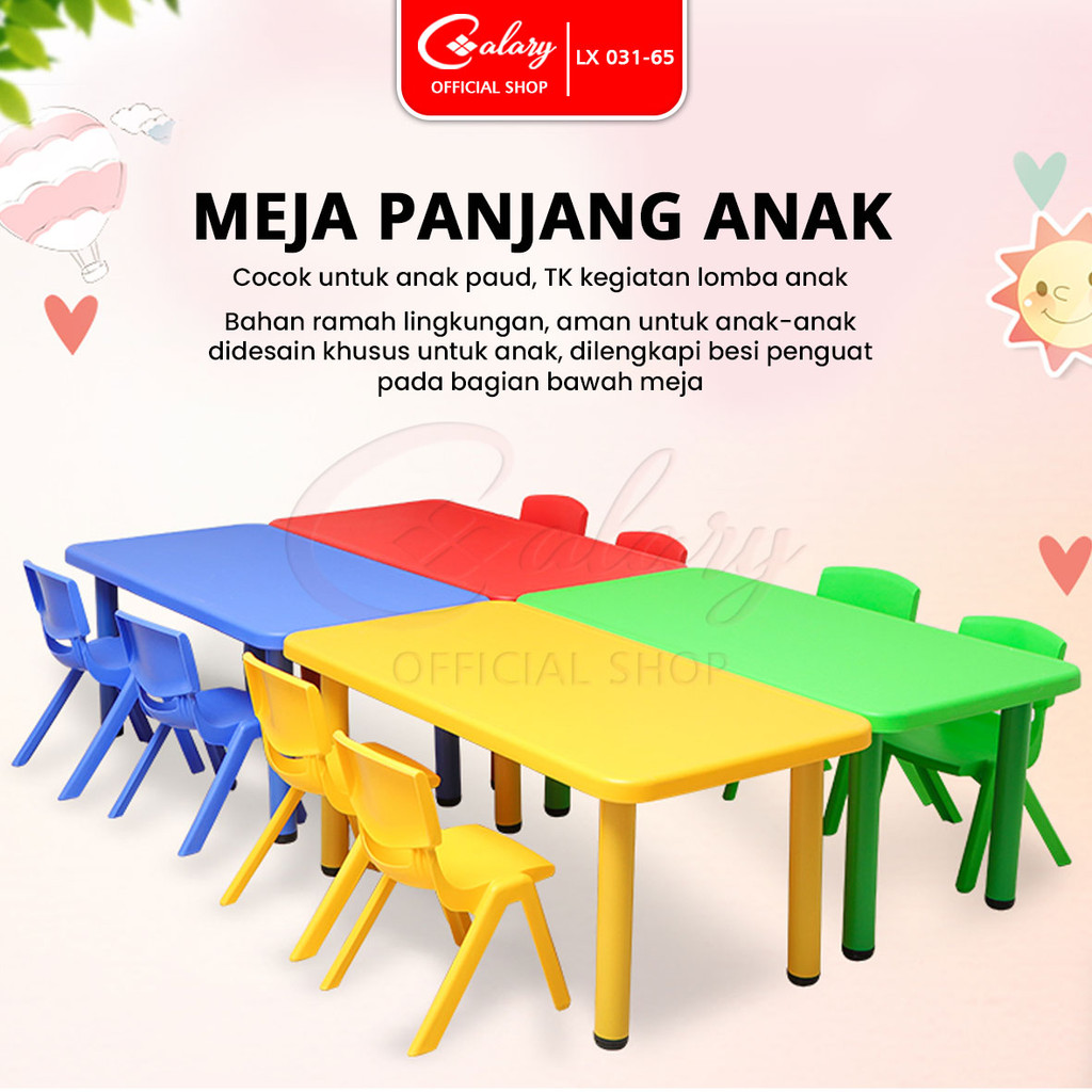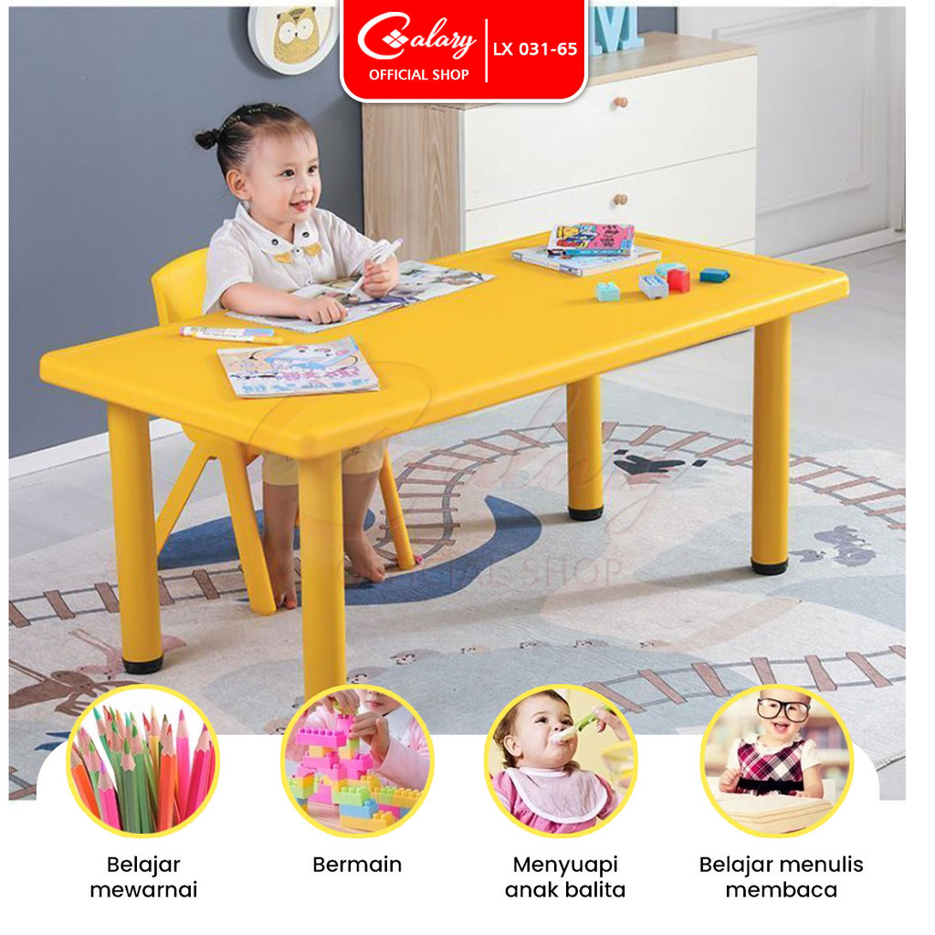SPEEDS Meja Belajar Anak Rectangular Kin Kids Table Meja Ergonomis Persegi Panjang TK Paud Colorful Kids Table Warna War