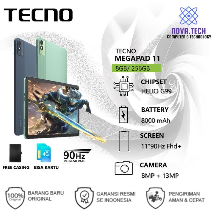 Tablet Tecno Megapad 11 4G LTE Mediatek helio G99 Ram 8GB 256GB Baru Dan Garansi Resmi