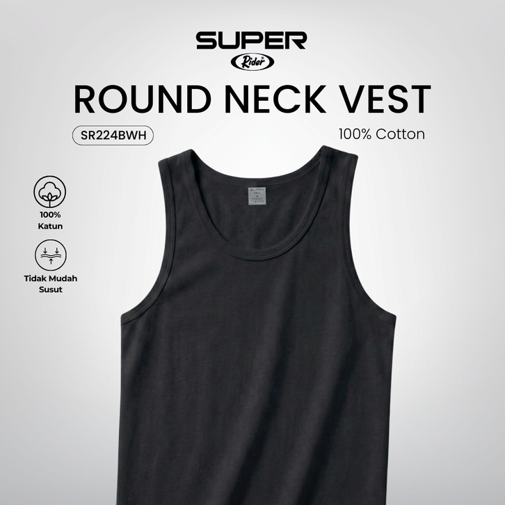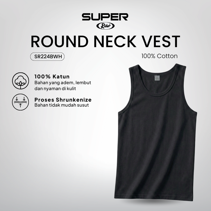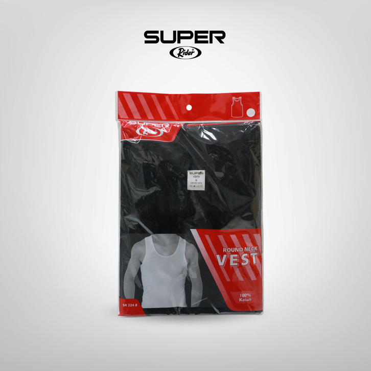 Super Rider Vest - Singlet Pria SR224BWH Warna Hitam isi 1 Pcs