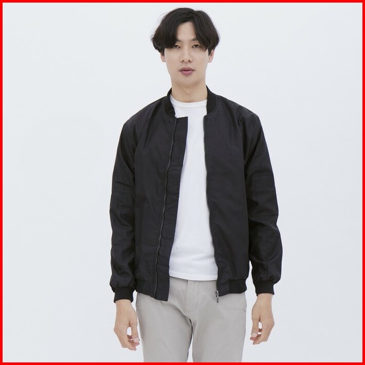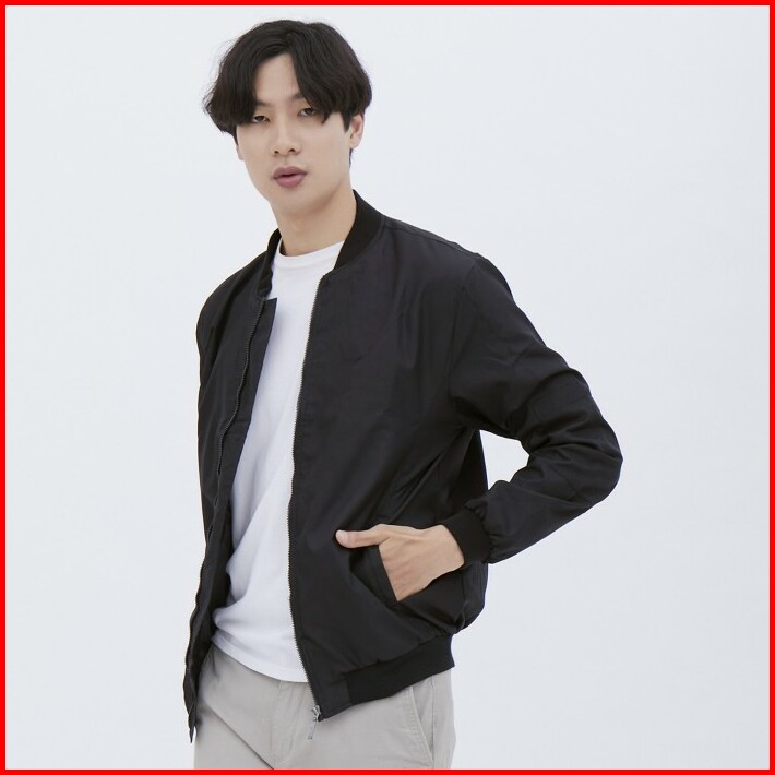 M231 Jaket Pria Taslan Bomber Panjang Hitam 1758b
