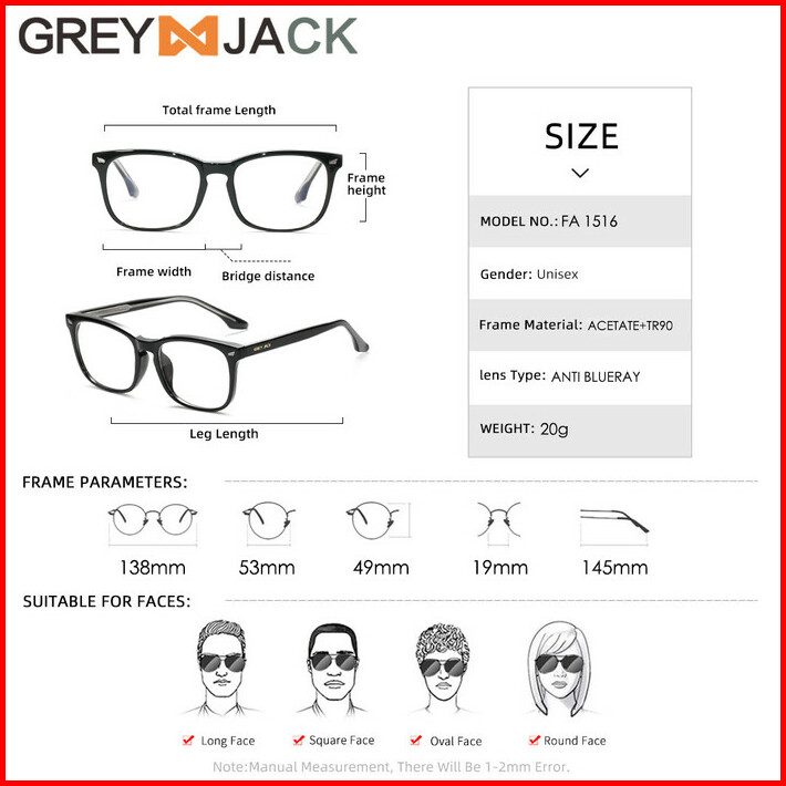 Grey Jack Kacamata Anti Radiasi Blueray Tr90 Pria Dan Wanita 1516