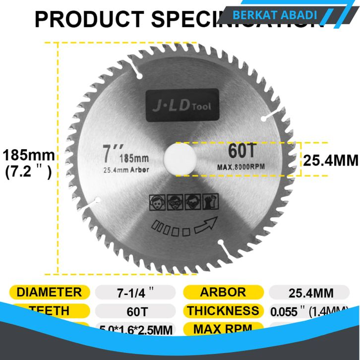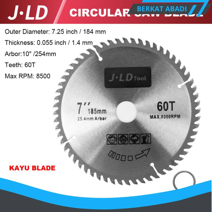 JLD 185mm Circular Saw Blade 7Inch 60T Mata Gerinda Potong Kayu - 60T Mata Gergaji Bulat Circular Saw Blade mata saw