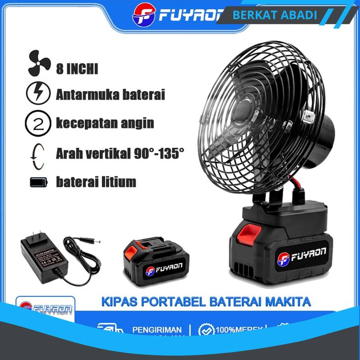 FUYAON【 】Kipas Kemah Kipas Besi 8 Inci Kipas Makita Portabel Dapat Diisi Ulang Baterai Lithium Kipas Darurat Kipas