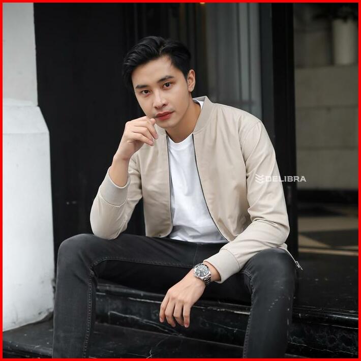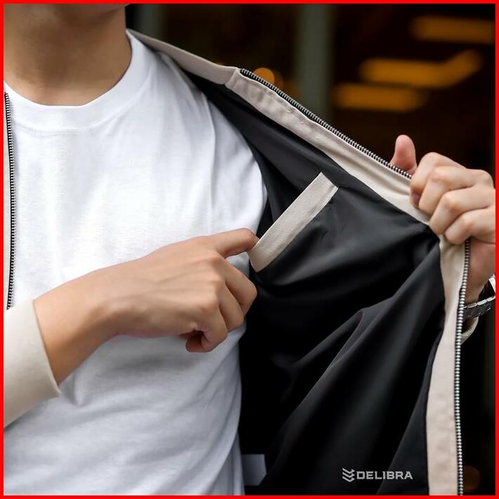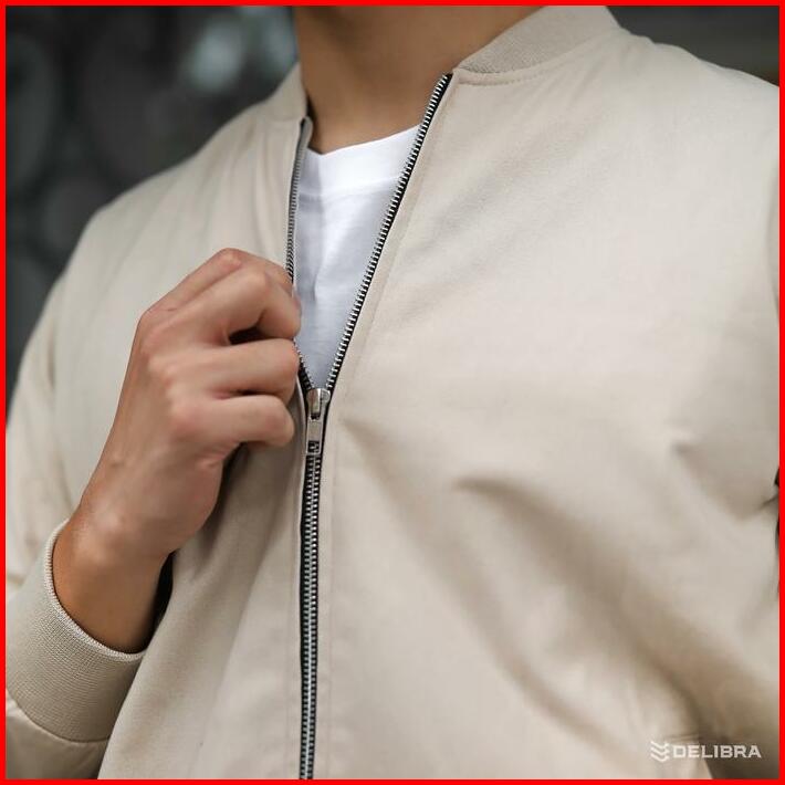 Delibra Jaket Bomber Canvas Pria Light Cream