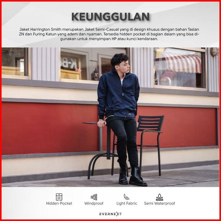 Evernext Jaket Formal Casual Pria Jaket Harrington Smith Jaket Motor Pria Outdoor Waterproof Windproof Nyaman Distro
