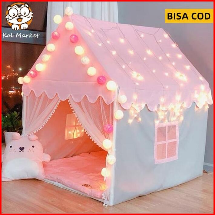 Portable Tenda Anak Wigwam Lipat Tenda Anak Tipi Bayi Bermain Rumah Besar Anak Perempuan Putri Merah Muda Castle Kamar A