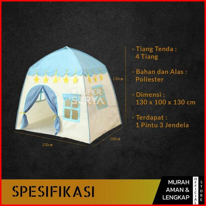 Tenda Anak Jumbo Mainan 3-4 Orang Kemah Rumah Camping Princess Castle Playhouse