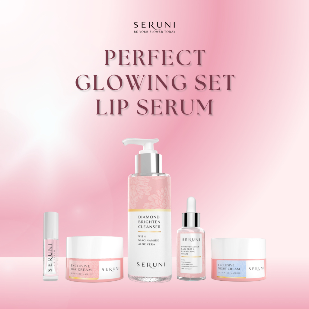 Skincare Wanita Glowing BPOM Seruni – Paket Glowing Set + Lip Serum – Mencerahkan Wajah & Membantu Melembabkan Bibir