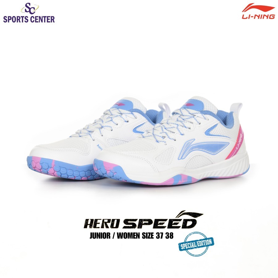 KARAMAT SPORTY - NEW SPECIAL COLOR SEPATU BADMINTON LINING AERO SPEED JUNIOR AYTU029 WHITE / LIGHT BLUE