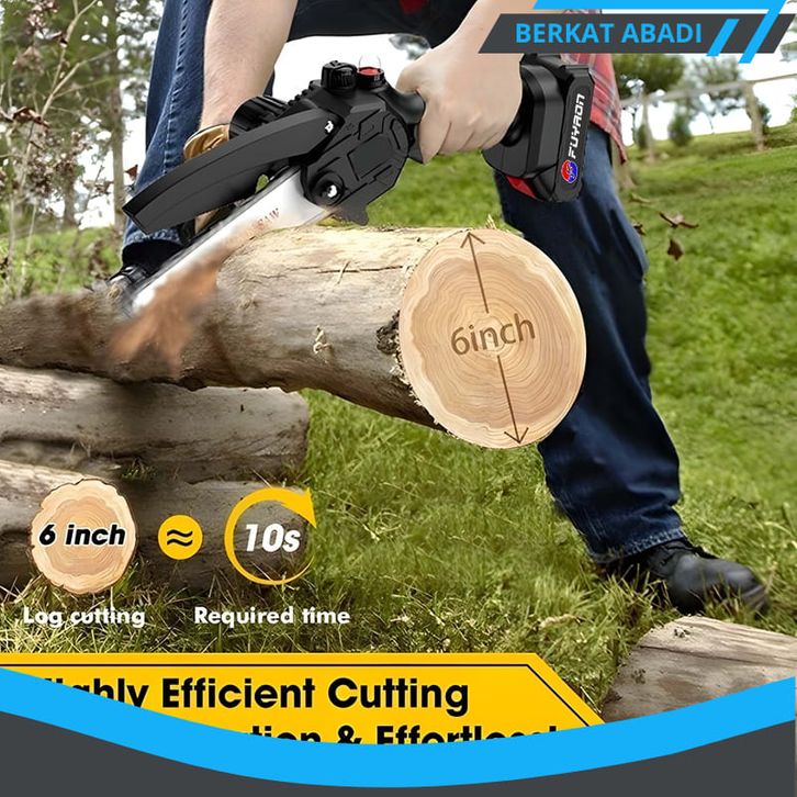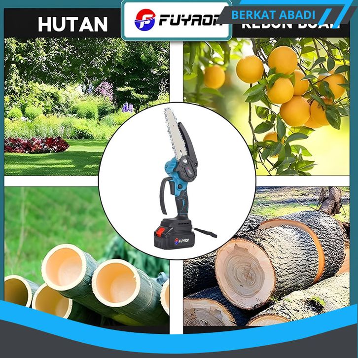 FUYAON【 】Chainsaw 4 inch/6 inch/8 inch Cordless Gergaji Pemotong Kayu Gergaji Listrik 2 Baterai Handheld Chain Saw