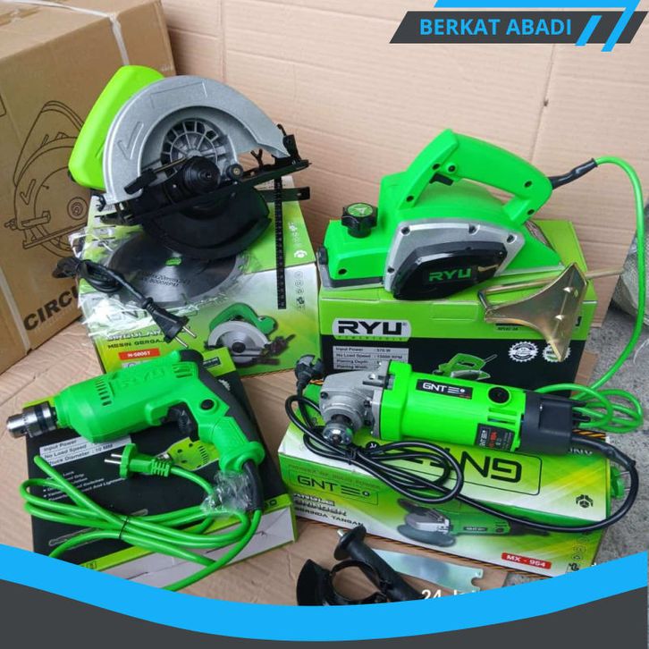 !! [4 ITEM] Paket Tukang kayu lengkap mesin planer/serut dan circular gerinda dan bor 10set