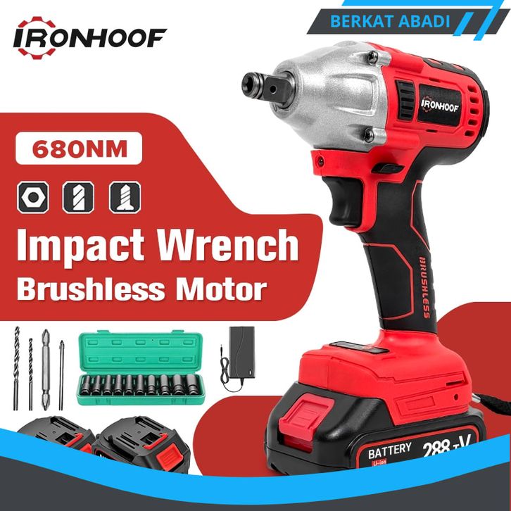 IRONHOOF CORDLESS IMPACT WRENCH impact baterai MESIN BOR UNTUK BAUT MOBIL impact Brushless
