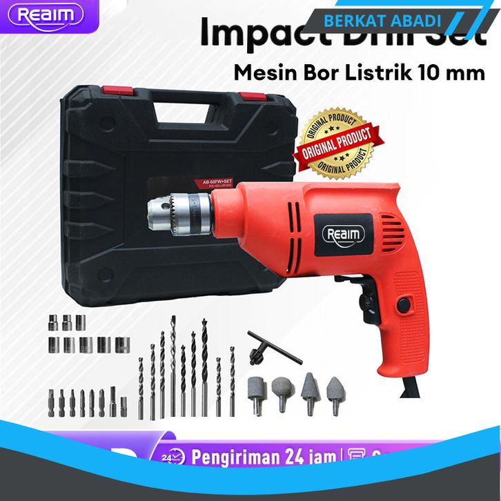 REAIM Mesin Bor Baterai 10/13mm Bolak Balik Electric Drill Bor Beton Kayu Besi Tembok Impact Drill