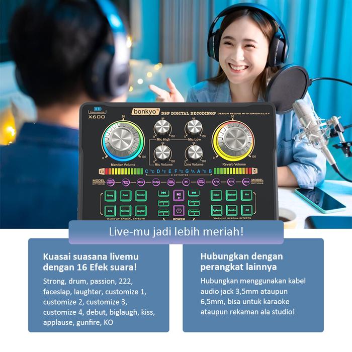 Bonkyo X600 Sound Card Peralatan Siaran Langsung