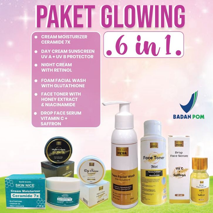 Skincare Wanita Glowing BPOM Skin Nice Drop Face serum with VIT C Saffron With Cream Moisturizer Ceramide 7X Niacinamide