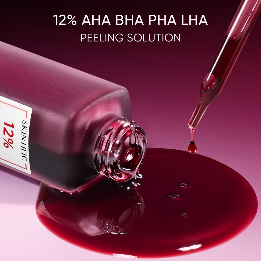 SKINTIFIC 12 PERSEN AHA BHA PHA LHA Peeling Solution 30ml - Serum Exfoliasi Wajah Mencerahkan Dark Spot dan Eksfoliasi Mengang