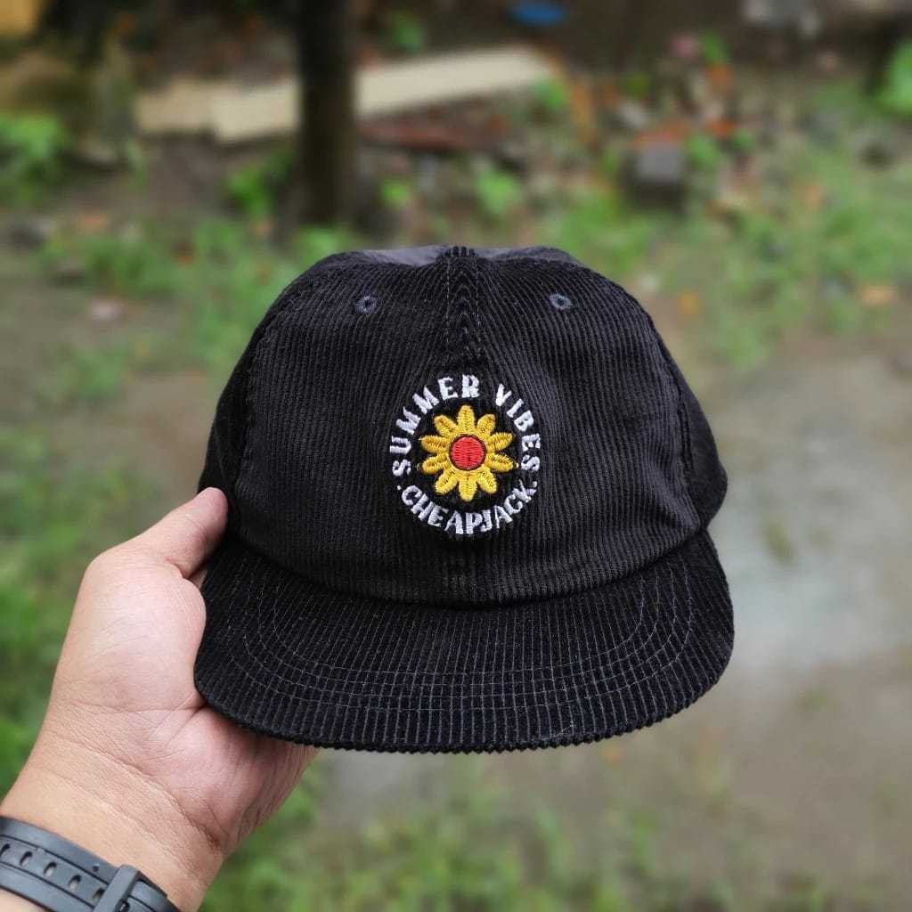 Topi Distro Hat Black Rekomen pria Corduroy Delusion Hitam / Topi Skena
