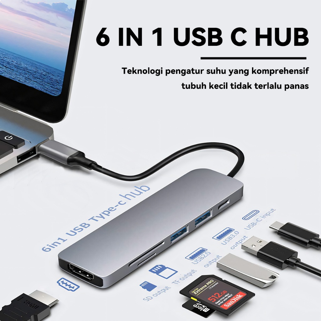 KOOYIINN USB Hub 3.0 Type C Adaptor 6in1/8in1 Laptop HDMI Hub Converter USB Micro SD/TF Card for Macbook Accessories
