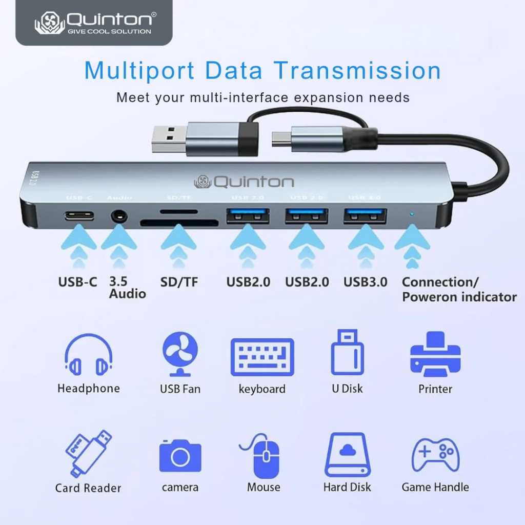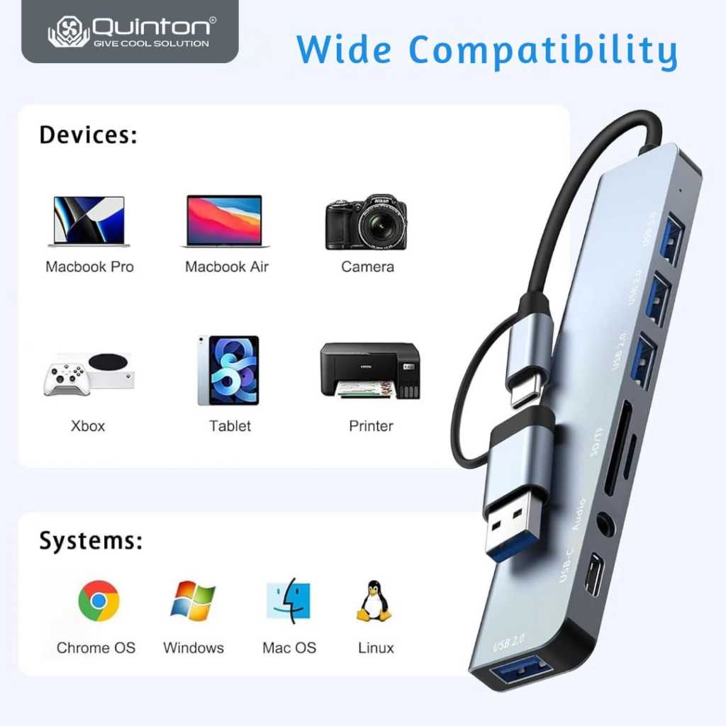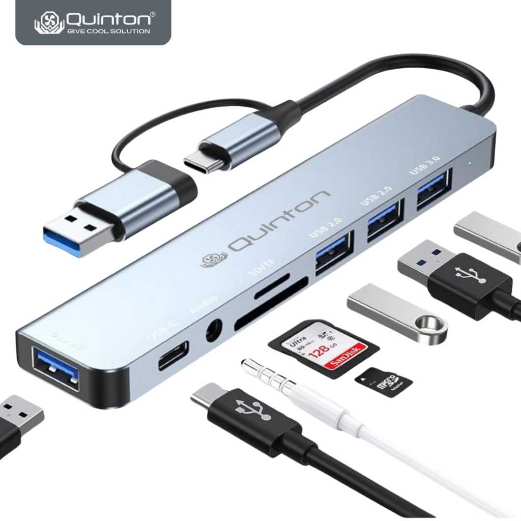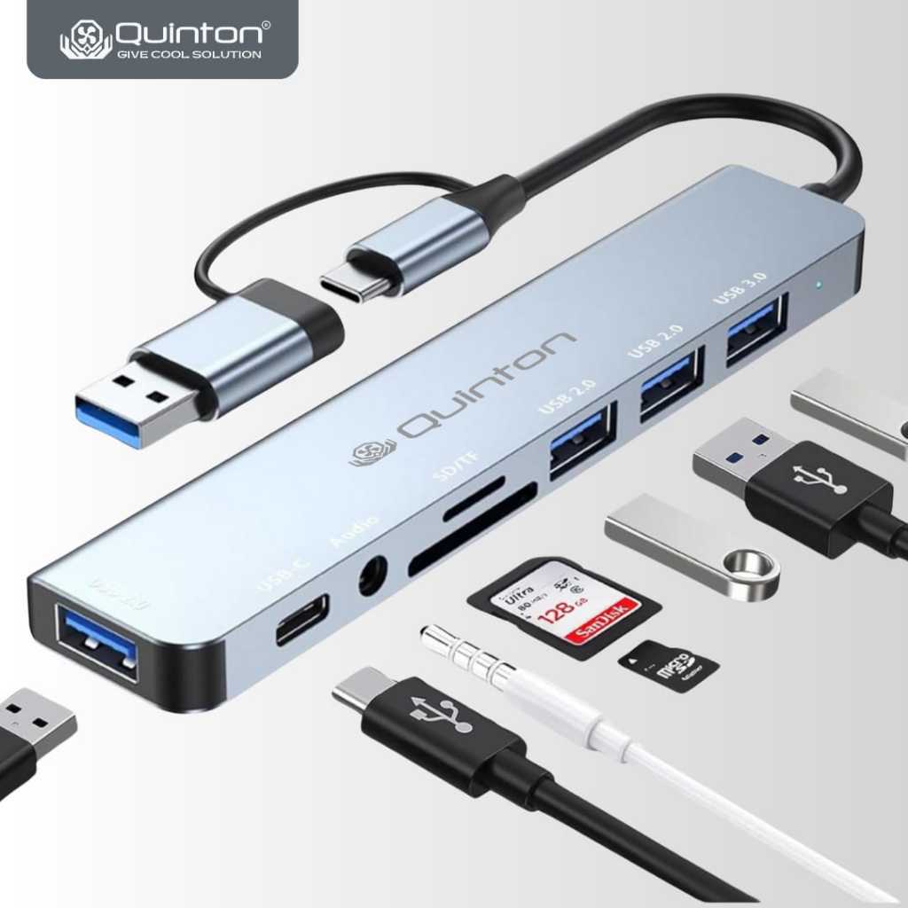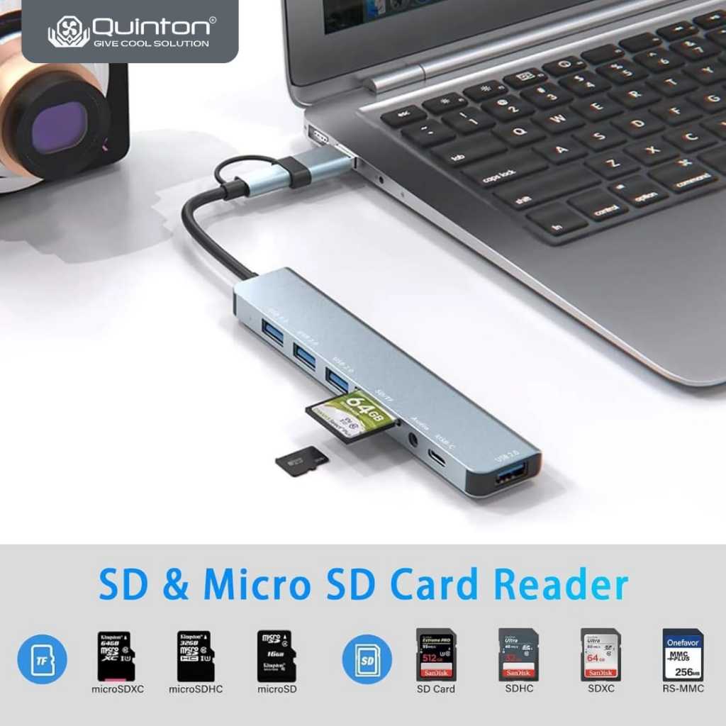 USB Hub Adaptor Type C to USB A 8in1 Type C to SD Micro Card Reader