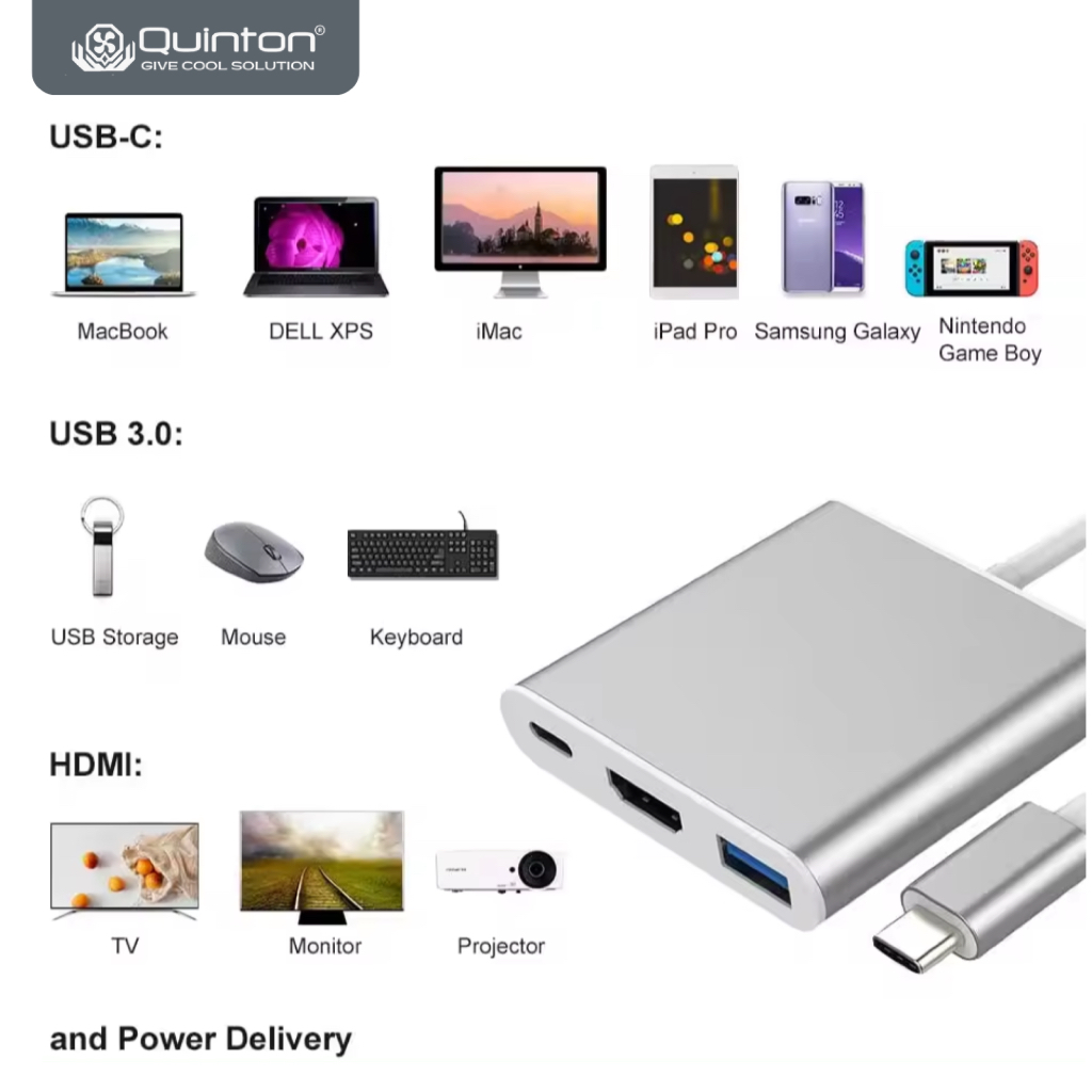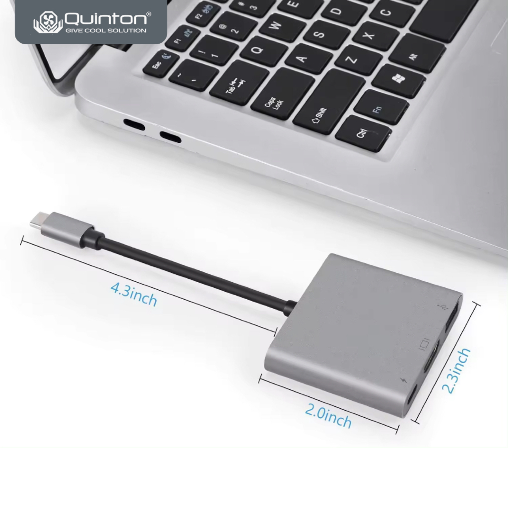 QUINTON Type C hub 3 in 1 to HDTV DP 4K , Usb 3.0, PD Type C, - for macbook , tablet display port.
