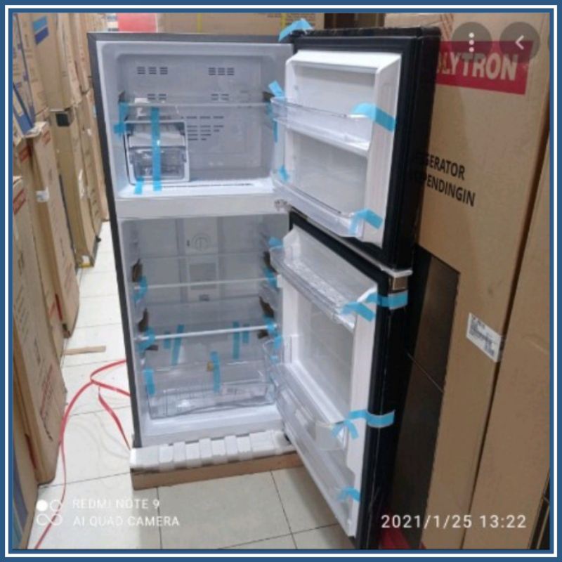 KULKAS POLYTRON 2 PINTU POLYTRON PRW 23 MN PRW 23 MNX TEMPERED GLASS DOOR LEMARI ES 2 PINTU TANPA BUNGA ES - BLACK