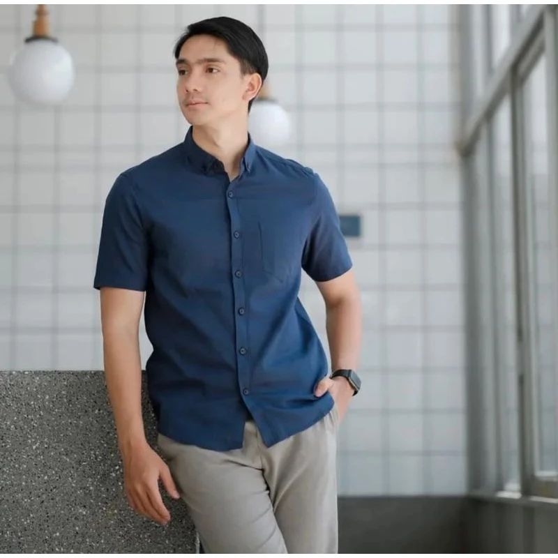 (Gratis Ongkir) Kemeja Putih Pria Lengan Pendek Polos Premium Distro Kasual Kerja Warna White M L XL