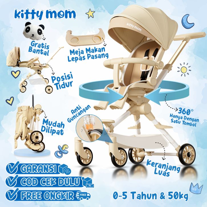 Stroller Bayi & Balita 2 Arah – Bisa Berbaring & Dilipat Cabin Size | Cocok untuk Newborn & Travelling