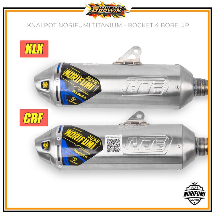 KNALPOT NORIFUMI ROCKET 4 TITANIUM KOMPETISI BORE UP SE KLX 150 BF DT / KLX 140 BUILT UP CRF 150 L WR 155 R STAINLESS OR