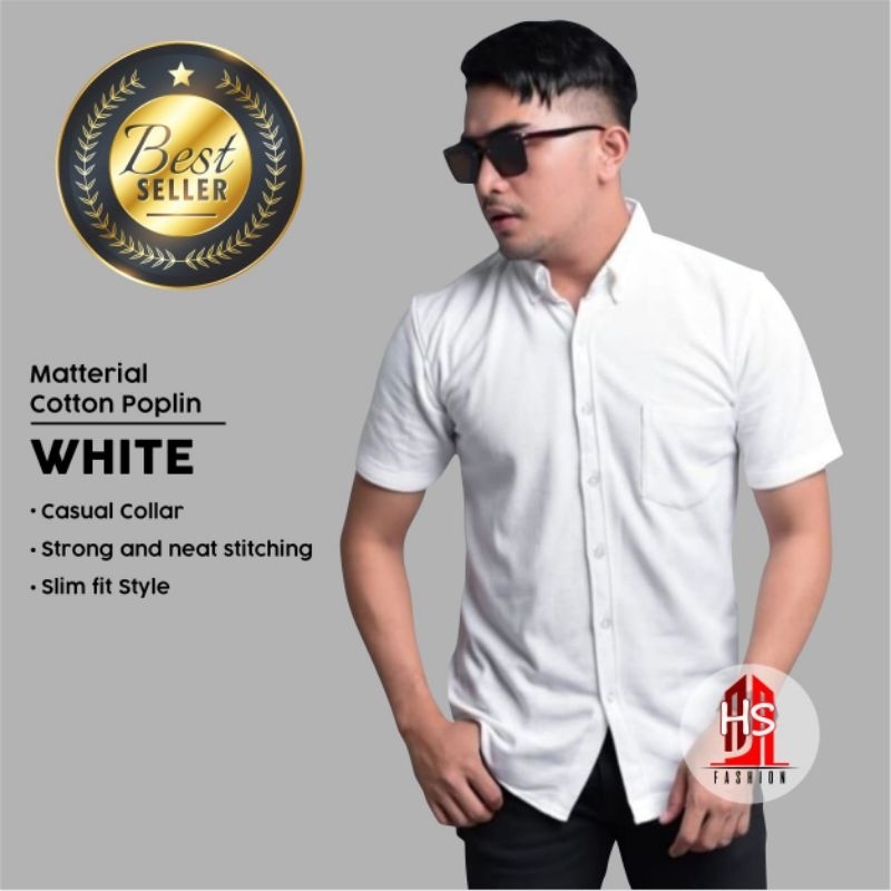 (Gratis Ongkir) Kemeja Putih Pria Lengan Pendek Polos Premium Distro Kasual Kerja Warna White M L XL
