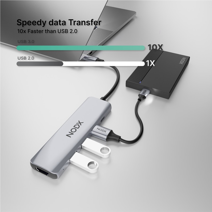 NODX Xport Lite USB Hub 5 in 1 (3x USB-A 3.0, 1x HDMI, 1x PD)