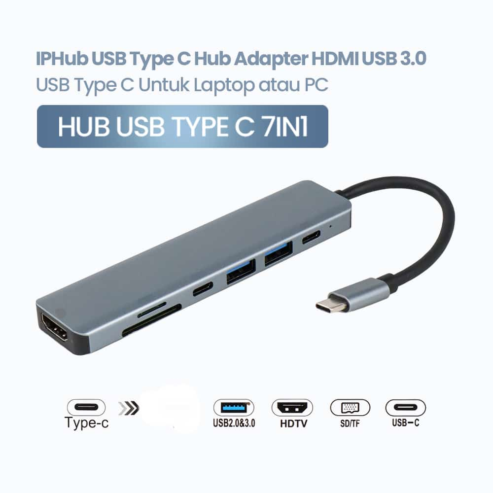 [7In1]USB Type C Hub Adapter HDMI USB 3 type C TF/SD CARD gadget hp tablet macbook laptop [bisa OTG]