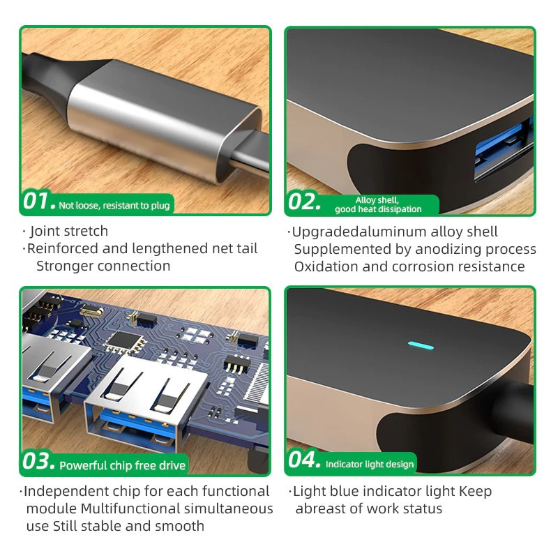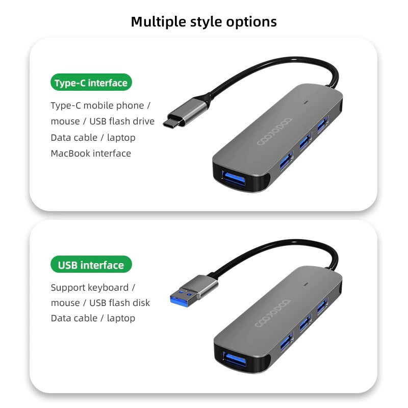 GOOJODOQ Premium 4-in-1 USB Type A / Type C USB 3.0 Hub for Mobile Phone PC - USB Type-C