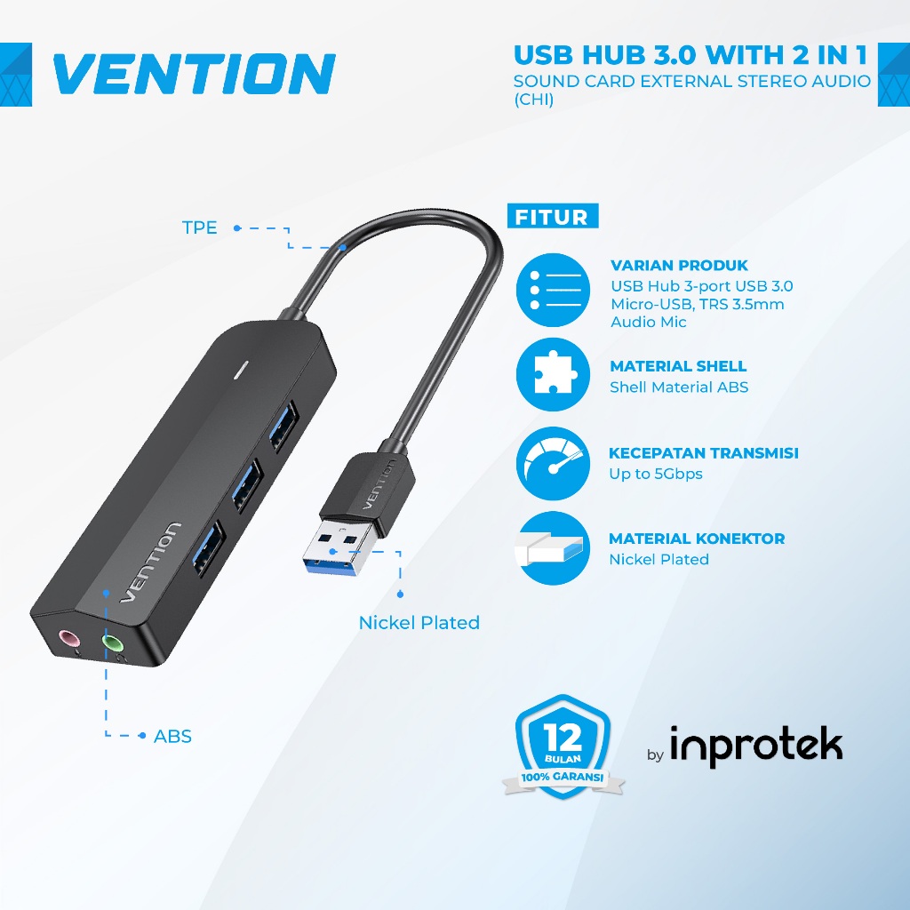 Vention USB Hub 3.0 with 2in1 Sound card External Stereo Audio