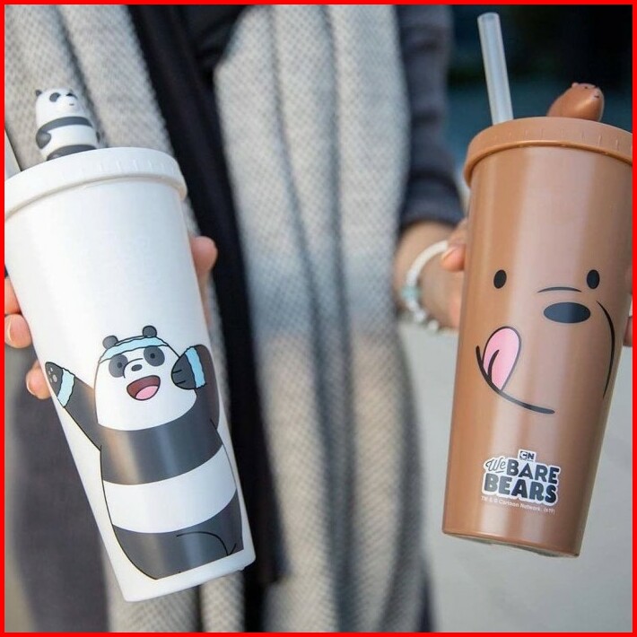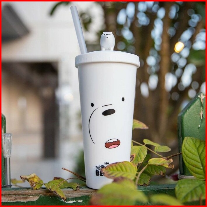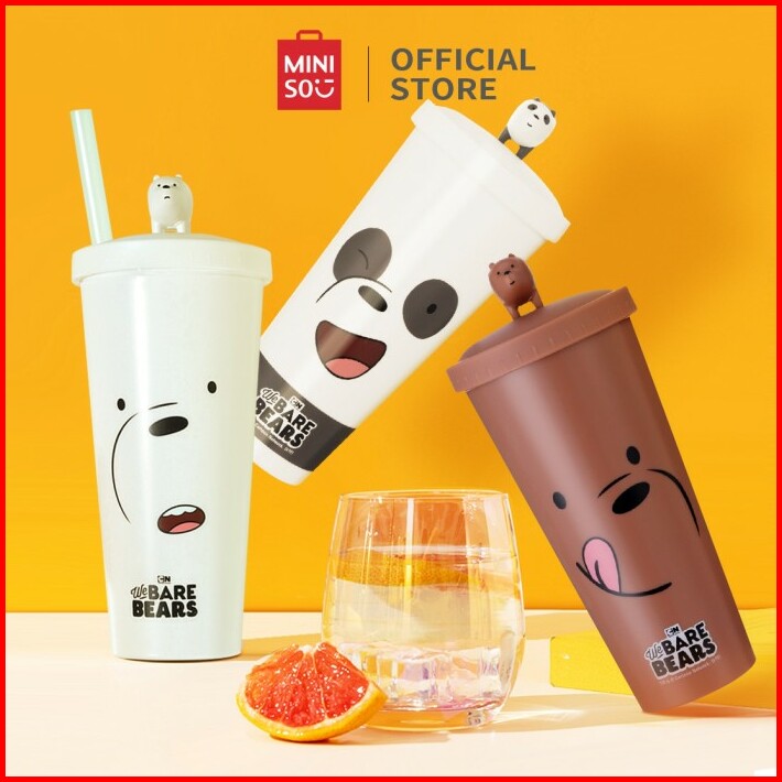 Miniso We Bare Bear Botol Minum Tumbler Tempat Air Minum Sedotan Straw