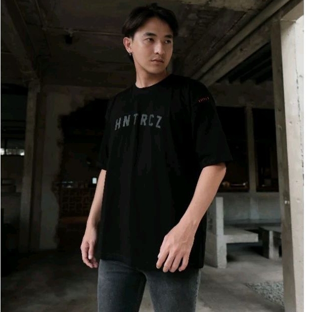 HUNTERCUTZ - Kaos Oversize Pria Black Skull Split Red Huntercutz Official