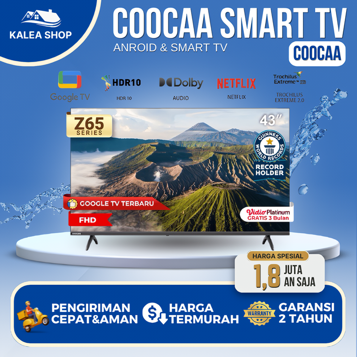 Tv Coocaa Z65 32 Inch 4K GOOGLE Dolby Audio Digital Smart Tv Android 43 Inch HDR10 Televisi Led Garansi Resmi Polytron