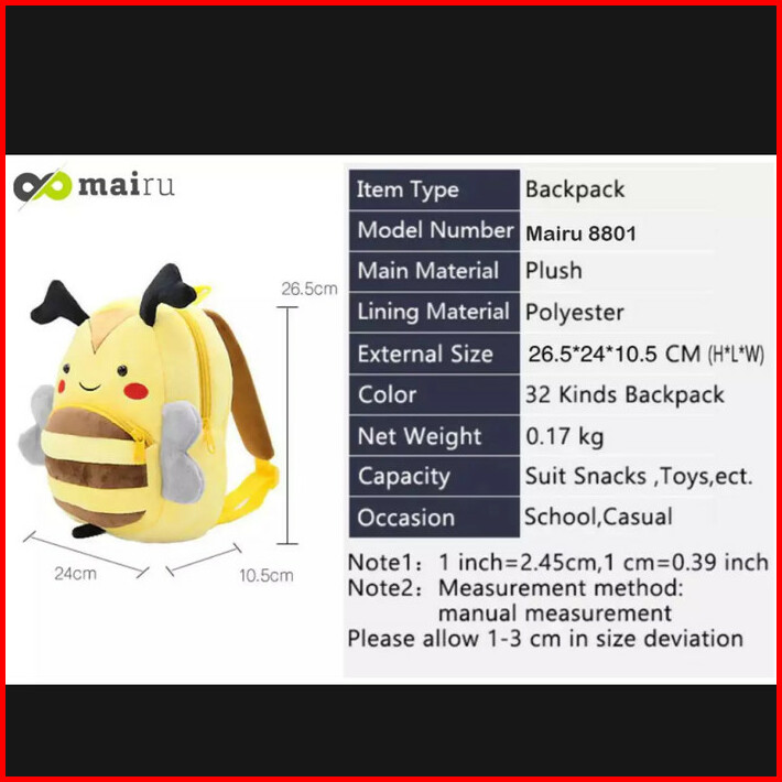 Mairu Tas Sekolah Anak Boneka Karakter Binatang Zoo Edition 8801