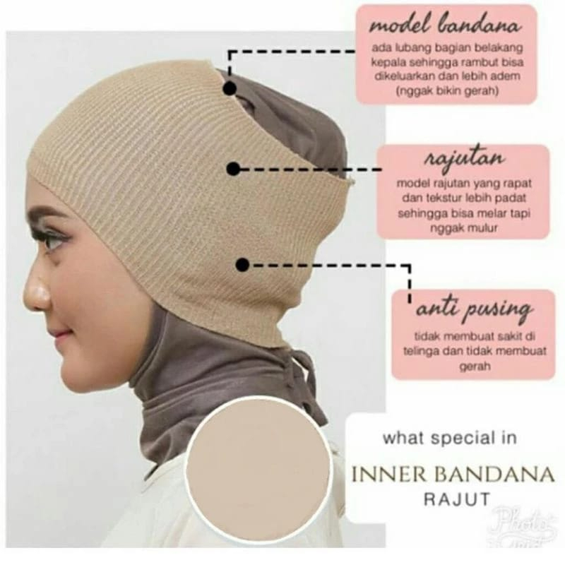 Ciput Inner Bandana Rajut Salur Anti Pusing Premium Dalaman Hijab Ciput Polos Rajut