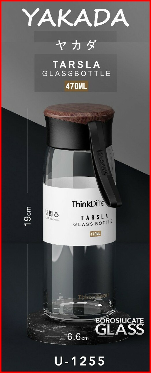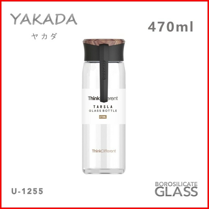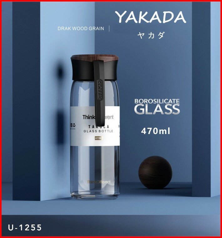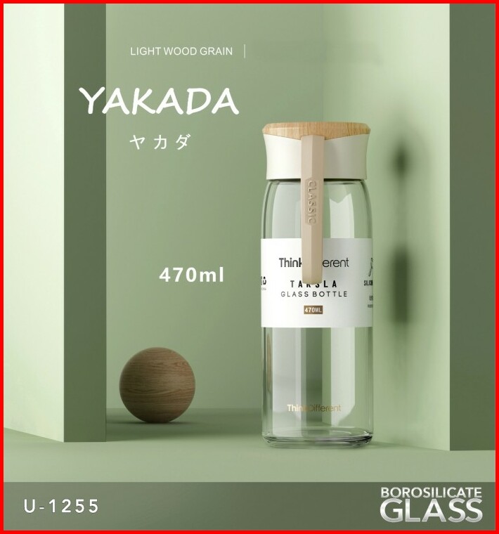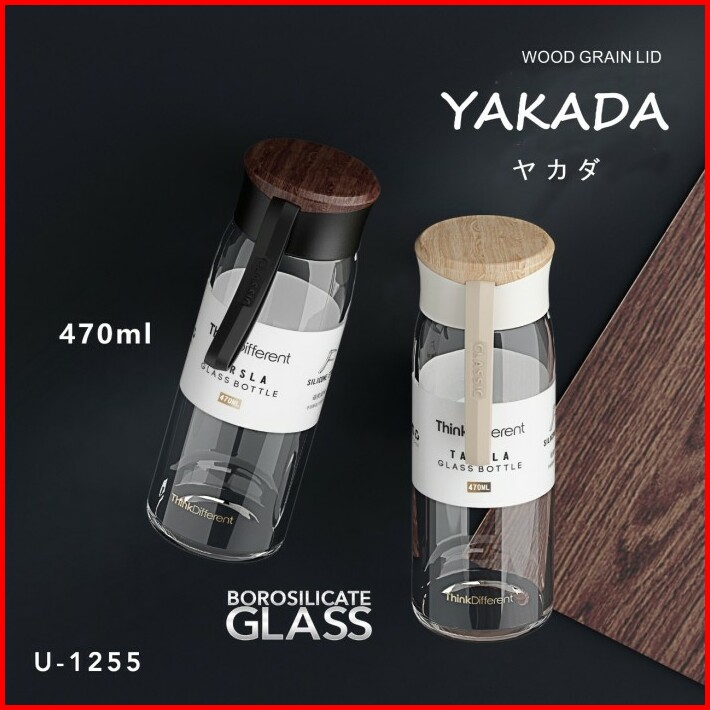 Botol Minum Kaca Borosilicate 470ml Leakproof With Wood Grain U-1255