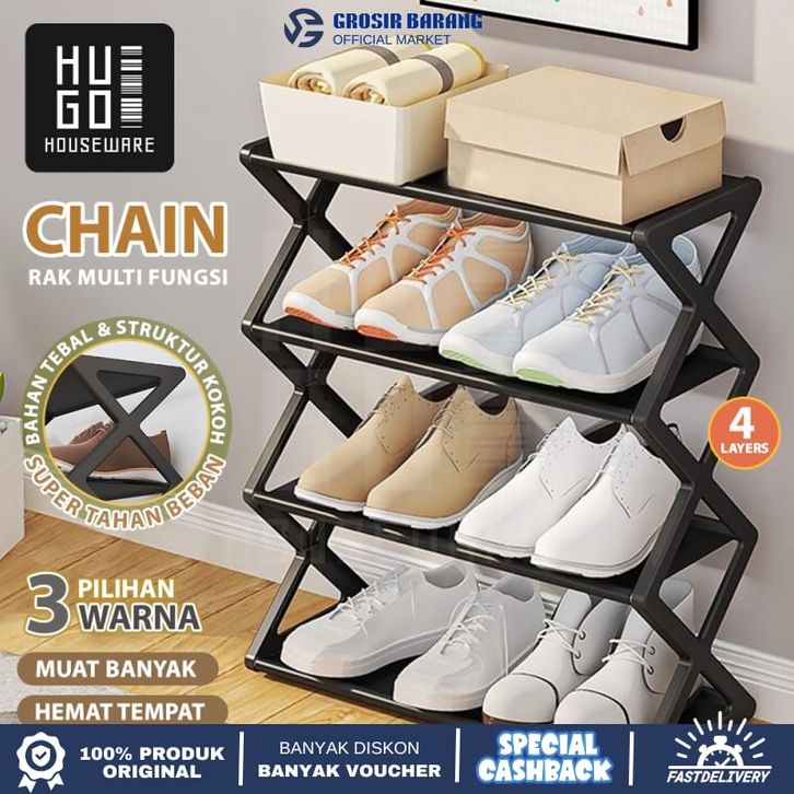 Rak Sepatu Portable 4 Susun Tempat Sepatu Sandal Serbaguna Minimalis Stainless Steel Kokoh