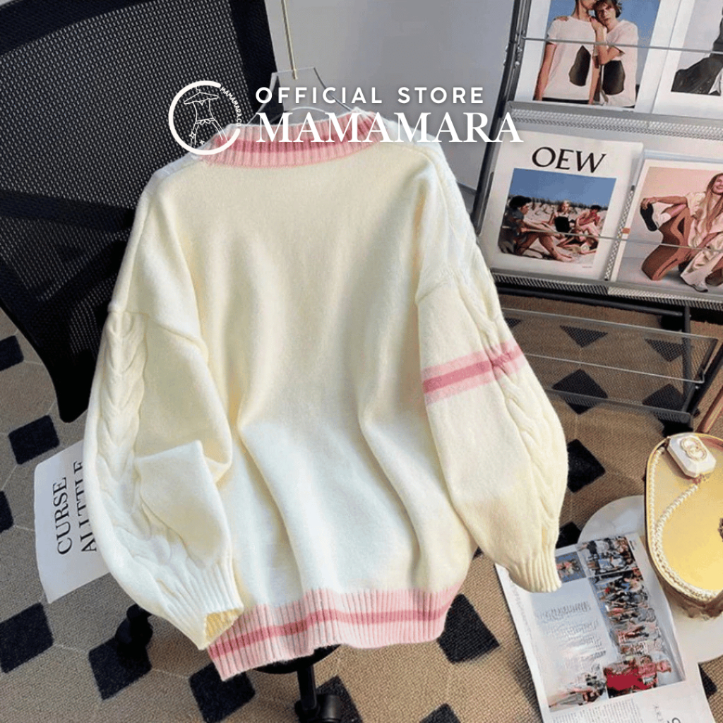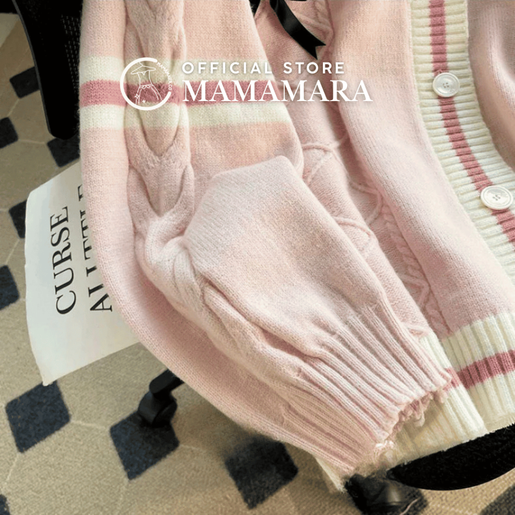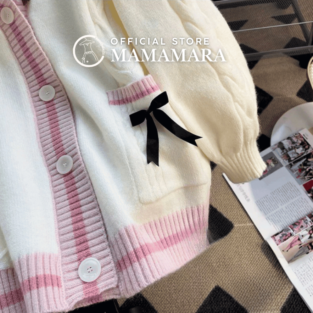 MAMAMARA - Cardigan Ribbon Pita Coquette Atasan Wanita Lengan Panjang Longsleeve Baju Oversize Besar