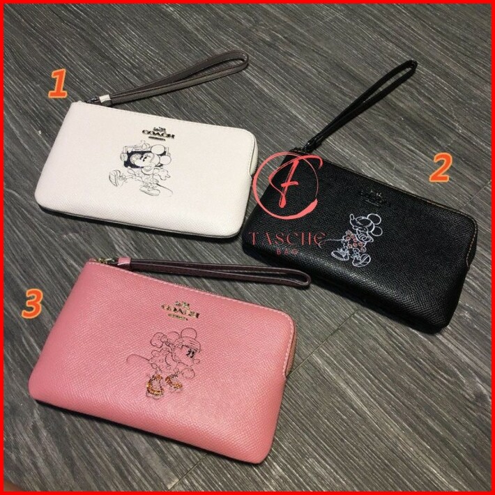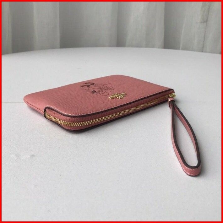 Clutch Women Minnie Mouse Motif Leather Corner Zip Wristlet F30004