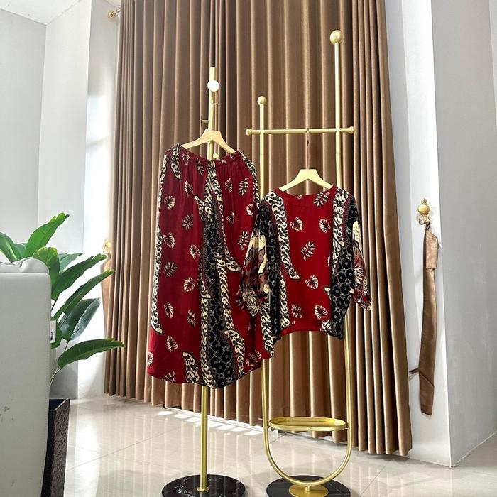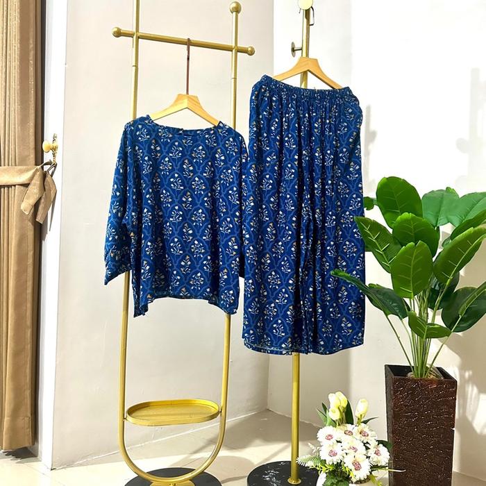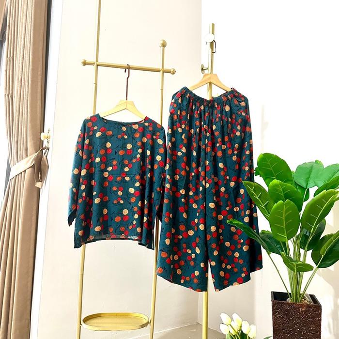 RICHA Setelan Baju Atasan dan Celana Kulot Batik Richa Setelan Lengan 7/8 Panjang Katun Rayon Dewasa Wanita Motif